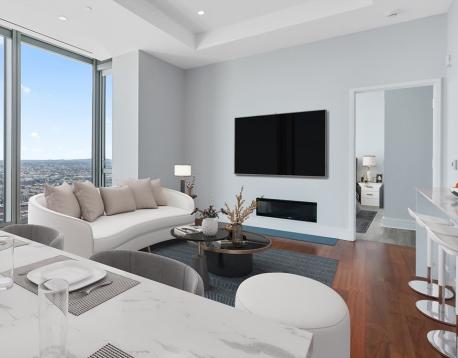 Welcome to the 31st floor of the Four Seasons Private Residences at One Dalton. This stunning 2-bedroom, 2.5-bath residence combines world-class luxury with breathtaking views of the South End, Blue Hills, Downtown, and Boston Harbor. Floor-to-ceiling windows and soaring 10+ foot ceilings fill the home with natural light, while a thoughtful layout is perfect for both relaxing and entertaining. Especially barely all rooms face to south so that you can enjoy the most sunshine during wintertime.The living room features newly installed hardwood floors with elegant border inlay, a tray ceiling with recessed lighting, and a cozy gas fireplace. Additional upgrades include custom closets, Lutron motorized shades, and designer lighting throughout.Residents enjoy exclusive Four Seasons services24-hour concierge, valet parking, and access to over 20,000 sq. ft. of curated amenities. One valet parking space is included with this extraordinary rental in Bostons most prestigious residential.