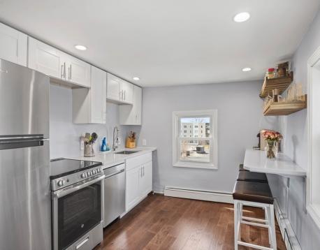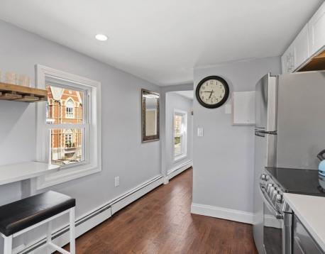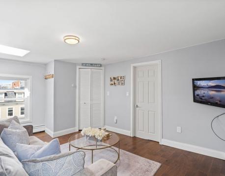 Sun splashed 1 BR Penthouse located at the base of Telegraph Hill. Available as of 11/1/2025. Renovated unit offering a working kitchen w/quartz countertops, modern cabinets, stainless appliances, breakfast counter and ample storage . Open living area with laminate HW flooring and skylight. Main BR is large with a full-size closet and extra space for additional furniture or desk for an office. Full bath and laundry pantry and linen closet round out this charming unit. Windows on all 3 sides of the unit offer bright sunshine throughout the day. Easy access to X-ways, MBTA and all S.Boston has to offer. Tenant pays all utilities, no pets, nonsmokers only. Lease to run through 8/31/2026