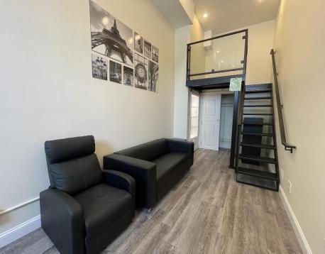 FURNISHED Huge loft style triplex unit! Moments from Boston University. Granite and stainless full kitchen, large bathroom with glass shower. Hardwood floors, central air, recessed lighting. Elevator secure building. T picks up right across the street. Tons of restaurants, bars and shops right at your footsteps. Cats allowed.