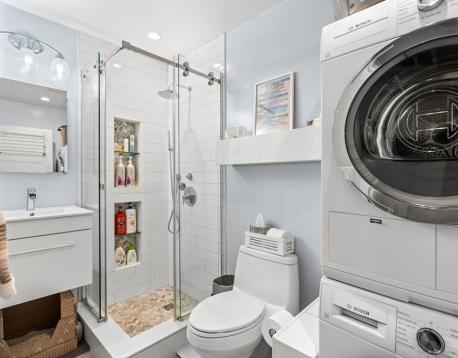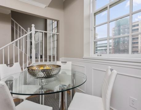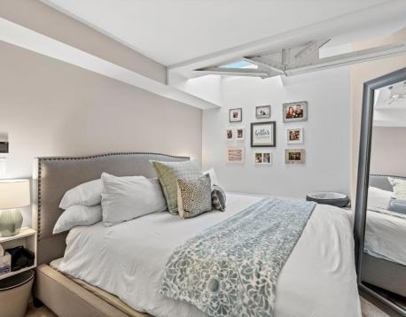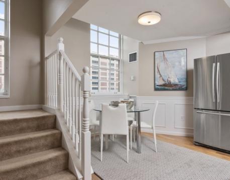 Located in the historic Basilica building, this well designed, bright & airy 2 bedroom, 2 bathroom top floor duplex comes with its own deeded and heated GARAGE parking! Enjoy over 1000 square feet of open living space highlighted by a wall of windows. A center staircase separates the stainless eat-in kitchen from the living room and gleaming hardwood floors accentuate the abundance of natural light. Upstairs, the primary bedroom includes an en suite bath, custom California closet and skylight. The 2nd bedroom has a large walk-in closet & guest bath. Many original accents are highlighted to create a truly unique space with an ideal floor plan. Additional features include electric blinds and IN UNIT laundry. Live on the ocean's edge in the Charlestown Navy Yard with transportation via the water taxi and partners shuttle. All while being moments from highways and public transportation and amongst some of Boston's best restaurants and waterfront walking paths.