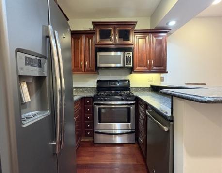 Freshly painted two bedroom condo with private patio on Charming South End Street. This modern apartment features a large open kitchen, with granite bar top, stainless steel appliances, lots of cabinets and kitchen storage, in unit washer/dryer combo, and private patio, and central heating system. Lined with brownstones, this tucked away apartment is steps to countless conveniences including shopping, dining, public transportation, and social spots. Pet friendly and with a private entrance for convenient access in and out. Parking is available for additional monthly cost.