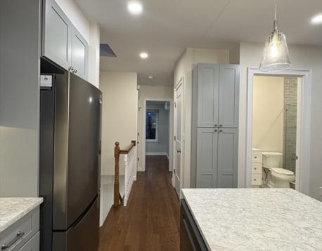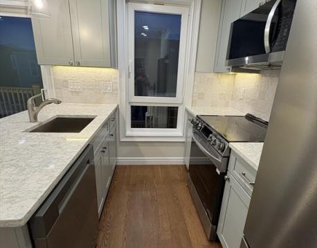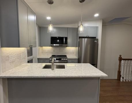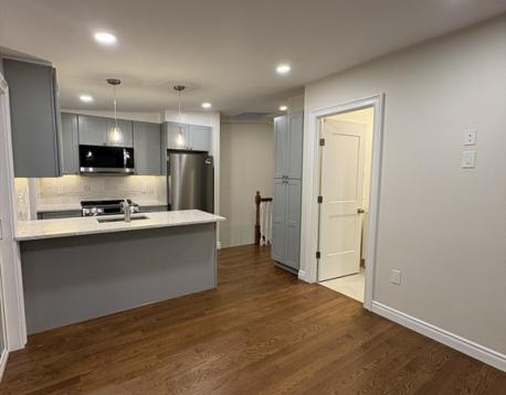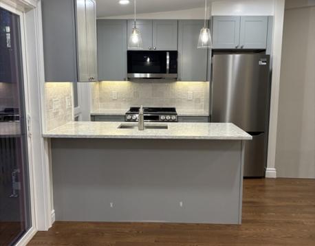 JUST renovated top floor 1 bedroom + office available now in prime Eastside location! This unit opens up to a stunning kitchen featuring quartz countertops and breakfast bar, tile backsplash and stainless steel appliances, open concept living room leading to a private back deck. King sized bedroom and bonus office/den. Additional features include in unit laundry, central air, hardwood floors, and extra storage in the basement. Ideally situated just a few blocks to the ocean, and all of the shops, restaurants, bars and cafes that East Broadway has to offer. Pets considered on a case by case basis. Sq footage is approximate as the unit was just completely done over and the floorpan was adjusted.**Please NO 9/1 inquiries!