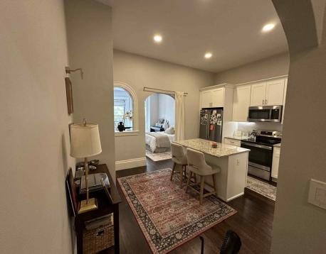 Spacious studio condo on the flat of Beacon Hill in excellent condition. Renovated in November 2022 with new kitchen, new bathroom, refinished hardwood floors, and paint. Living area features decorative fireplace, high ceilings, and abundant light from the bay windows overlooking Brimmer Street. The building has common laundry, a Butterfly MX intercom system, elevator, and a common roof deck with city and river views. Around the corner from the shops and dining of Charles Street, the Esplanade, Back Bay, MGH, and public transportation. Heat and hot water included. No pets, no undergrads. Professionally managed building and unit.
