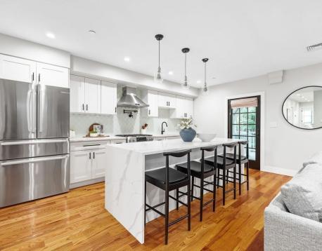 **1st month FREE***Welcome to Falcon Street! Enjoy luxury living in this top-floor spacious condo in East Boston's 'Eagle Hill' neighborhood. Offering private garage parking (included in the rent), in-unit laundry, two-full bathrooms & bedrooms, solid hardwood flooring, a large private deck and so much more, this unit is sure to impress. The living room and kitchen are open-concept and connect directly to the rear deck, a modern and convenient layout for entertaining. The primary bedroom is large and offers a gorgeous full-bath and two closets, one of which is a walk-in big enough to double as a small office. The 2nd bedroom, hall-bathroom and dedicated laundry room provide great space that is a rare find in Boston. The stunning condo is located within a primarily owner-occupied 6-unit building close to public transit and the water. Pets will be considered on a case-by-case basis. There is one garage parking space included in the rent.