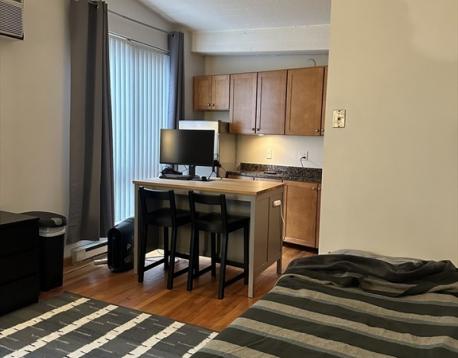 AVAILABLE 7/1/2026!Efficiently designed 365 sq ft loft style studio at 12 Stoneholm offers thoughtful city living in Boston's vibrant Fenway/Back Bay neighborhood. The space features soaring ceilings, west-facing windows providing abundant natural light, and quality hardwood floors throughout. The kitchen comes equipped with stainless steel appliances including range, wall oven, refrigerator, and disposal. Features electric heat and wall-mounted AC for year-round comfort.Building amenities include a rooftop swimming pool, fitness center, 24-hour concierge, laundry facilities, bike storage, multiple common roof-top decks, and secure entry. Garage parking may be available for an additional charge through the management company.Located just 0.2 miles from Hynes Convention Center Station with the Green Line blocks away. Within minutes of Berklee, Northeastern, Prudential Center, Whole Foods, Fenway Park, and shopping on Newbury Street.Rent includes water, sewer, security, and snow removal