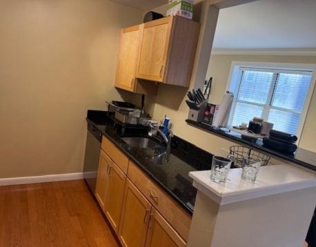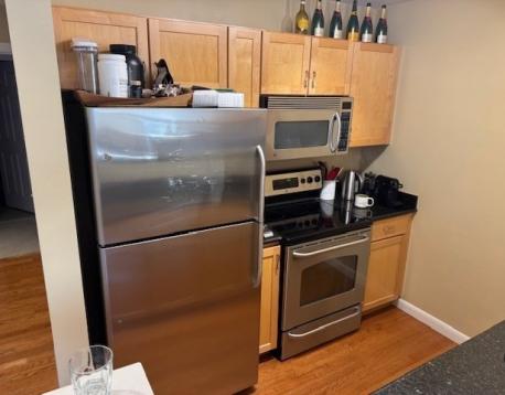 Wonderful and rare rental opportunity in Kenmore Square! Quick access to both the B and C trains (Green Line). Two spacious bedrooms and 2 large bathrooms. Walk-in closet and ensuite bathroom in the primary bedroom. Large, open floor plan; granite breakfast bar; stainless steel appliances; central A/C; and W/D in unit. Plenty of room for a home office and/or dining table in the oversized living/dining area. Onsite fitness room in the building; bicycle room; and there is also a private storage cubical for this unit. Professionally managed, elevator building. Easy commuter access by public transport, as well as Storrow Drive and the Mass Pike. VERY convenient and walkable location, between Beacon St. and Commonwealth Ave. Garage parking available for $300 per month. Hardwood floors in the main living area and new carpeting will be installed in the bedrooms. Unit to be freshly painted prior to occupancy.