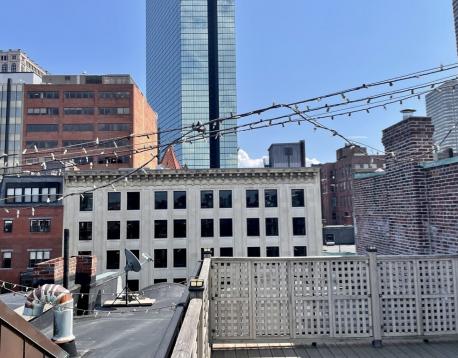 Spectacular floor through penthouse unit with expansive PRIVATE ROOF DECK on Newbury Street. This unit features soaring ceilings throughout, central air, and generous living space. The updated kitchen overlooks a very spacious living room, highlighted by a marble decorative fireplace. Two large back bedrooms provide peace and quiet, and third bedroom is located off the living room, separated by french doors. Plenty of storage and closet space. Enjoy privacy and stunning views from your very own roof deck. This property is professionally managed, and off street parking is available for rent.