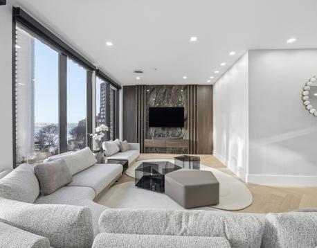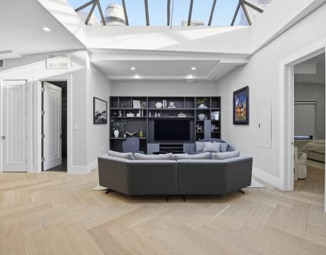 Experience turnkey penthouse living in this brand-new, custom-built and fully furnished 3,000-square-foot loft residence in Bostons sought-after Waterfront/Financial District. Designed for discerning renters, this 3-bedroom, 3.5-bath home offers exceptional scale, privacy, and luxury, complete with valet parking and direct elevator access. The dramatic open living space features soaring ceilings, oversized windows with city and water views, elegant herringbone hardwood floors, and refined finishes throughout. The chefs kitchen is a true centerpiece, highlighted by a grand skylight above a custom-designed kitchen, high-end appliances, bespoke cabinetry, and a generous island ideal for entertaining. The expansive primary suite offers a spa-inspired ensuite bath and ample closet space, while two additional bedrooms each feature private ensuite bathroomsperfect for guests, family, or a home office. Additional highlights include in-unit laundry and valet parking across the street.