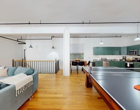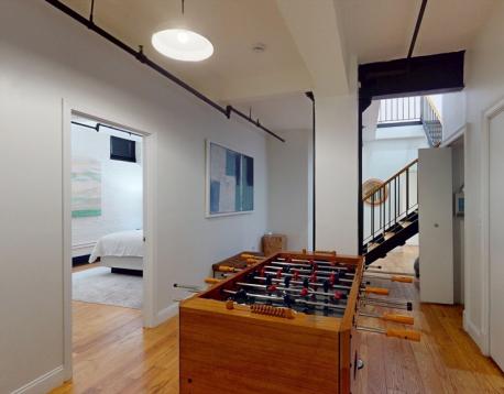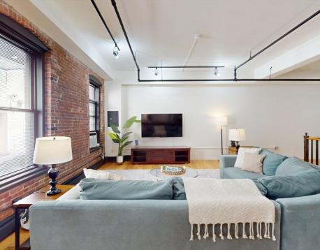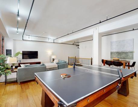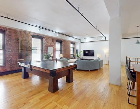 Welcome to the Fenway Suite at Destiny Lofts, a stunning bi-level townhouse in the heart of Bostons Back Bay. This spacious unit comfortably sleeps six, offering the perfect retreat for both business and leisure. The first floor features a bright, open-concept living area with a large sectional sofa and plenty of windows that fill the space with natural light. The well-equipped kitchen boasts stainless steel appliances and countertops, ideal for preparing meals. The adjacent dining area comfortably seats six, making it perfect for gatherings. A full bathroom is located on this level, and a versatile pool/ping-pong table adds an extra layer of entertainment. Downstairs, the lower level hosts three queen-sized bedrooms, each designed for restful nights. A second bathroom and in-unit laundry provide additional convenience. A foosball table on this floor offers guests another option for fun and relaxation. (WSR Broker of Record - Adele Lurie)