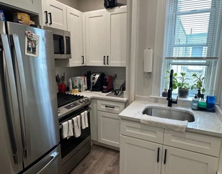 January 1st**, Fantastic STUDIO, 1 bath, totally renovated a few years ago, nice hardwood floors, high ceilings, newer replacement windows, 4th floor, heat and hot water included, elevator in building, renovated kitchen with white granite and stainless steel appliances, full bathroom new flooring, lights, etc. Building has a common laundry room, bike room, elevator, and it handles snow removal, landscaping, and more. No pets. No partying. Grad students OK. Available 1/1/2026. 8 months lease to start then can renew for another 12 months.