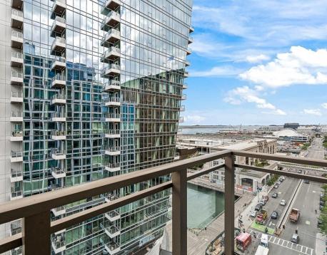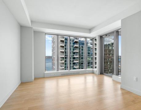 Front facing one bedroom, plus den/office at the Echelon Seaport is offered with private balcony, views, and (1) garage parking. An ideal floor plan with floor-to-ceiling glass windows facing east, private outdoor space, views spanning across Seaport District and Boston Harbor. Open concept kitchen with high-gloss white Italian cabinetry, integrated Thermador appliances, gas cooktop, quartz countertops and backsplash. Large bedroom, french closets, glass wall and views. Marble bathroom with walk-in shower. Interior plus room with closet, full laundry and white oak flooring throughout. The complex offers 24-hour Concierge, Valet Parking, Doormen, 1 indoor and 2 outdoor Pools, Hot Tub, Sky Lounge, Innovation Center, Fitness Facilities, Library, Private Dining and Wine Room, Outdoor Terraces equipped with gas grill stations and fire pits. An Iconic location offering fine dining, shopping, entertainment. Next to Downtown Boston, South Station, North End and all major transportation points.