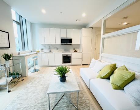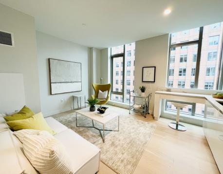 Sitting on the 10th floor of the New Echelon building in the rapidly emerging Seaport District, this luxury studio w/ Sleeping Alcove and large floor-to-ceiling windows gets great sunlight. Spacious living/dining area features open floor plans, a modern kitchen with custom Italian flat panel cabinetry, Caesarstone quartz countertops, high end Bosch/Thermador integrated appliances, and white oak plank floors throughout. Marble-appointed bathroom with custom wood veneer vanity. Residents will enjoy 5-star services provided by Regent Hotels & Resorts. The amenities are unlike anything Boston has seen with over 50,000 sq/ft of common space featuring owners lounge, private dining room, roof terrace, 3 pools (1 indoor) with cabanas, fitness center, spa, indoor basketball court, golf simulator & terraces with fire pits. Steps to Courthouse Station (Silver lines), grocery store (Trader Joe's), finest restaurants and popular entertainment and shops.