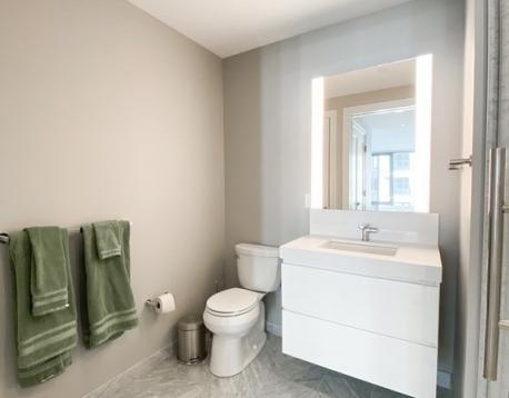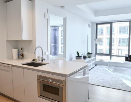 Luxury Echelon Seaport Residence. Facing Southeast, 12th floor 1 BR 1.5 BA with partial Harbor View. Spectacular retail and restaurants paired with over 50,000 SF of indoor and outdoor residential only amenities. Echelon Seaport residents enjoy 1 indoor and 2 outdoor pools as well as a state of the art fitness facility including an indoor basketball court, sports simulator and hot yoga studio. The Club Level features a fireplace lounge, private dining room, and outdoor terraces with grill stations and fire pits all designed to be an extension of your home. White Glove staff includes 24/7 concierge, doorman, and porters. The Sky Lounge & Terrace on the 22nd floor offers residents the option to entertain overlooking the downtown skyline. Finishes include white oak wood plank floors throughout, open kitchen with gas cook top & custom Italian cabinetry, Thermidor integrated appliances, and spa like marble bath. In-unit laundry. One garage Valet parking included in rent.