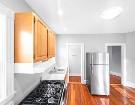 Available June! | FIRST, LAST, RENEWABLE LEASE UNTIL 5/31 | Set back on a quiet JP street you will love the newly updated 2.5 bed unit! Features living room, two spacious bedrooms, bonus office space, large eat-in kitchen, renovated bathroom, updated electric, fresh paint, newly refinished hardwood floors, exclusive LARGE back porch and shared laundry in basement. Close to fab local amenities such as #39 and #41 bus routes, orange line MBTA, Whole Foods, MSPCA, Blue Nile Cafe and more. Why wait? First, Last, renewable lease until 5/31 next year required. Cats ok; no dogs, sorry.
