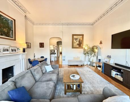 This elegant 2-bedroom residence blends historic charm with modern comfort in one of Back Bays premier riverside addresses. The expansive living room features soaring ceilings with intricate crown molding, oversized windows that bathe it with natural light, and direct views of the Charles River and Esplanade. The open layout includes a dining area and decorative fireplace framed by classic millwork. A functional galley kitchen offers granite counters, white cabinetry, and a breakfast bar. The spacious master bedroom includes ample closet space and hardwood floors, while the second bedroom provides flexibility as a guest room, office, or studio. Additional highlights include a full tile bath, in-unit storage, and original architectural details throughout. Ideally situated across from the Esplanade, near Newbury Street, Copley Square, and the footbridge to Cambridge. A quintessential Back Bay home combining space, light, and location.