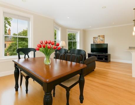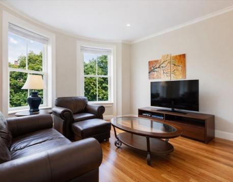 Premier South End sun-drenched renovated two-bedroom, one-bath unit with hardwood floors throughout. The chefs kitchen features a breakfast bar and premium stainless steel Bosch appliances. Open concept living/diningroom central air/heat, a refined modern bath, and in-unit laundry. A private deck offers an ideal outdoor retreat, and 1 one tandem parking space is included. July 1 start date.