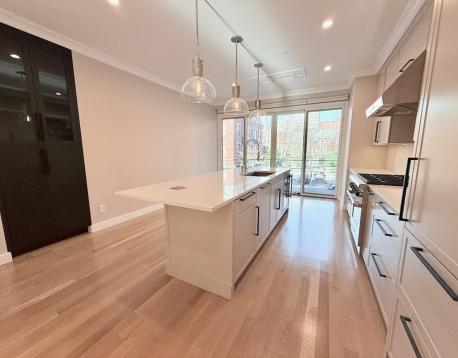 Stunning 2022 construction & rare extra wide floor-through with parking. Private entry with vestibule and closet. The fully equipped chef's kitchen with island seating, Wolf 6 burner range, beverage fridge & direct access to covered deck spanning the entire width of the of building; overlooking the Dartmouth Square fountain with Back Bay skyline views. Open plan living/dining with built ins, gas fireplace & traditional bow front bay window. Dreamy primary suite accommodates a king bed and furnishings, wall of windows with direct deck access, fully customized walk-in closet and marble bath complete with oversized vanity, glass walk-in shower and ample storage. Generous 2nd bed with double closet overlooks picturesque Warren Ave. Shared bath with tub. In-unit laundry, central air and 1 assigned parking space. In prime South End location minutes to Back Bay Station, Newbury Street and the best of the South End's restaurants, shops, SOWA, Whole Foods and I-90/I-93. No pets.
