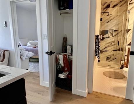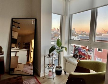 Available September 1st! Situated on one of the most up and coming streets, this newer building offers modern one-bedroom units. Unit 502 is on the top-floor with awesome views of Boston's skyline. It has a smart layout with a large kitchen island, multiple closets, hardwood floors, 2-zone heat/AC, and in-unit W/D. Building amenities include a lobby package handling system, a ButterflyMX Intercom, a gym with Peloton cardio equipment, and a garage with parking available for $350/month. Just first month's rent and security deposit required for move-in.