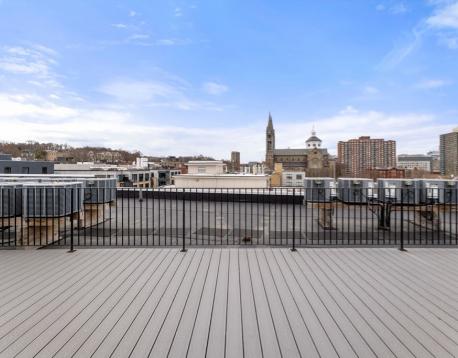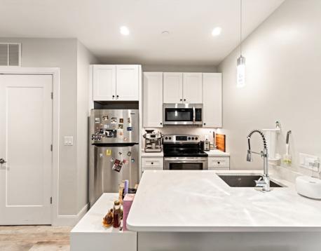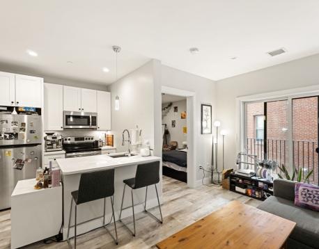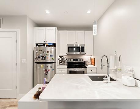 Tremont 1457 are exceptional residences newly constructed in 2020, offering stylish, modern living in Mission Hill with convenient access to the Longwood Medical Area and both the MBTA Green and Orange Lines.This inviting one-bedroom unit features a thoughtfully designed 499 sqft open floor plan, creating an expansive and airy atmosphere. The home is finished with hardwood floors, a modern kitchen boasting elegant stone countertops, stainless steel appliances, shaker cabinets, and a functional kitchen peninsula with bar seating. Additional highlights include a large, comfortable bedroom, in-unit laundry, a full bathroom with a sleek, tiled walk-in shower and a privatebalcony.Residents also benefit from building amenities including a secure entrance with a package room, a 24-hour fitness center, and an expansive shared roof deck featuring panoramic city views.