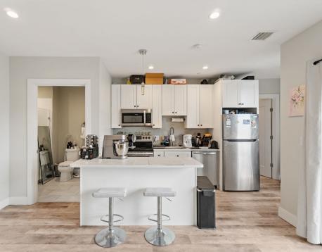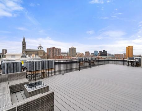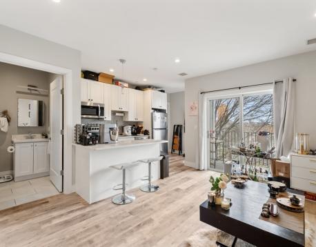 Clean, contemporary Mission Hill residence offering a highly convenient lifestyle near the Longwood Medical Area. Positioned with easy access to both the Orange and Green Line, this home places major hospitals, universities, and everyday amenities within close reach. The interior features a bright, open living space anchored by a modern kitchen with quartz countertops and stainless steel appliances. Oversized windows bring in natural light, complementing the homes straightforward, functional layout. Finishes include wood flooring throughout, recessed lighting, central heating and cooling, in-unit laundry, and updated an bathroom with glass-enclosed showers. Building amenities include a shared rooftop deck with grill areas and city views, along with a 24-hour fitness center. Professionally managed and recently built, this is a well-maintained property in one of Bostons most accessible and active neighborhoods.
