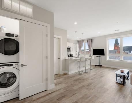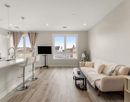 Boutique residence in Mission Hill, ideally located near Longwood Medical Area. Thoughtfully designed with contemporary finishes and everyday comfort in mind, this home offers a seamless blend of style, convenience, and value. The open-concept kitchen features Quartz countertops, sleek stainless steel appliances flowing effortlessly into a bright, inviting living space highlighted by oversized windows. Enjoy durable, modern flooring throughout, central air, and the ease of in-unit laundry. Residents have access to inviting shared spaces, including a spacious rooftop deck with grills and skyline views, along with a 24-hour fitness center. Professionally managed and newly constructed, this building offers a refined living experience moments from Longwood, the Green and Orange Line T, other major hospitals, universities, dining, and neighborhood favorites making it an exceptional opportunity to enjoy comfort, connection, and convenience in one of Bostons most dynamic spots!