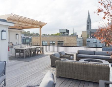 This third floor two bedroom at Valor features a professionally designed interior of 953 square feet with in unit laundry, central AC, wood floors, stone countertops, stainless appliances, and bronze accents for a bright and modern feel. Enjoy views of Boston from the common roof deck with grill, head to the off-site fitness room or downtown on the nearby Orange and Green Lines. Valor is Starry Internet enabled, pet friendly, and uses the REME HALO system to keep common area air clean and filtered. Steps from the Back Bay, South End, Fenway, and Longwood Medical, and perfectly located to explore cultural sites such as the MFA, Isabella Stewart Gardner Museum, and Fenway Park. Garage parking is available for an additional monthly fee and free bike storage is provided on the first floor for all residents. Professionally managed. No undergrads.