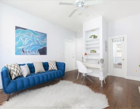 Bright and inviting high first-floor studio on a quiet yet convenient street, featuring bay windows that fill the space with natural light. The modern kitchen offers custom cabinetry, quartzite countertops, and stainless steel appliances, while the bathroom includes a spacious shower and quality vanity. Ideally located near the Green Line subways C and D Lines, bus routes, Time Out Market, Emerald Necklace parks, Longwood, universities, and all that Fenway has to offer. Optional off-street parking space with direct rear entry available for $325/month.