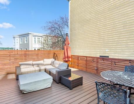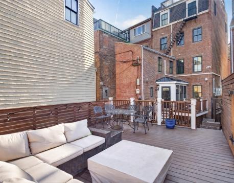 Location, Location! Rarely available 2 Bed/1.5 Bath parlor level duplex with unbeatable private outdoor space! Main level boasts a sunny front-facing living room, a large formal dining room and a stunning chef's kitchen featuring custom cabinets, SS appliances, granite countertops and a breakfast bar! Just off the kitchen, head outside to your private deck, a large private patio and a second private deck equipped with an outdoor TV, a gas grill, and an outdoor fireplace. A half bathroom with a side-by-side washer & dryer complete the first floor. Head upstairs to find two generous bedrooms including a large primary witha sitting area, custom California closets and fireplace. A full bathroom and a second bedroom with a custom walk in California closet completes the top floor. Additional features include central A/C, high ceilings & hardwoodfloors throughout. A Superior location near l that Charlestown has to offer! Available either 7/1, 8/1 OR 9/1/2026.