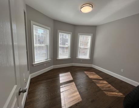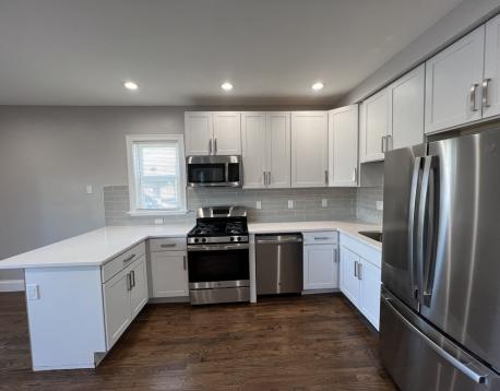 This condo quality newer renovation (Winter 2022) will be available for 9/1/26 move in! This 2 bedroom, 1 bathroom apartment offers an open living room and kitchen layout with a breakfast bar and plenty of living space. The new bathroom is fully tiled, with a great tile and glass door shower! There is central air and laundry in the unit! There is plenty of outdoor space and off street parking space available! Inquire for parking details!