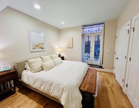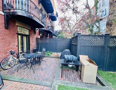 2-bedroom, 1-bath residence with a private 500 sq ft backyard and 1 designated off-street parking space with direct access to the unit at 150 Appleton, the former Bancroft School. Available May 1, this South End home offers an open living and dining area with high ceilings, tall windows, ample natural light, and direct access to the private patio and yard. The kitchen includes granite counters, stainless steel appliances, and generous cabinet storage. The primary bedroom features multiple closets and French doors to the yard, while the second bedroom offers a spacious layout and a large closet. Renovated tile bath, in-unit laundry, and central A/C add everyday comfort and function. Approx. 4 minutes to Prudential Center, 5 minutes to Back Bay Station, 7 minutes to Copley Square, and near Boston Public Library, Titus Sparrow Park, South End restaurants, shopping, and Back Bay amenities. No pets.
