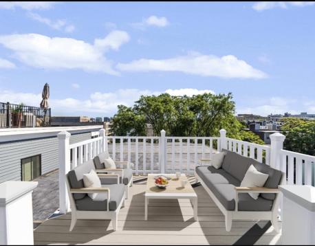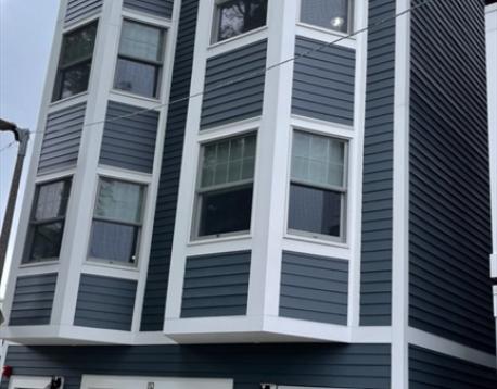 New luxury construction completed back in 2021. Offering this two bedroom with private deck and common roof deck. Open contemporary floor plan with beautiful Hardwood floors throughout. Kitchen with white quartz countertops, breakfast island, stainless steel appliances and shaker style cabinetry. Two equal size bedrooms. Large bathroom with washer and dryer. Photos are of another identical unit in the building. Possibility of a garage parking space coming available in the future for additional fee.