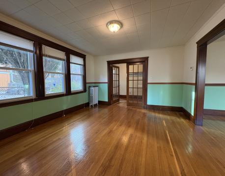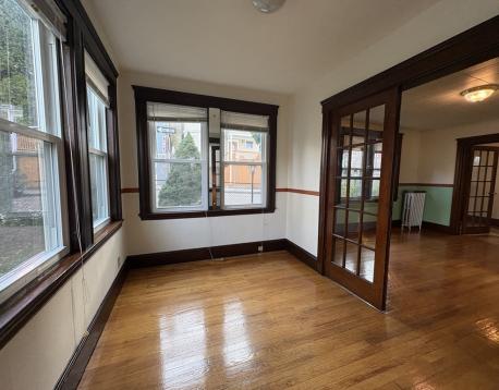 Gorgeous layout- 2 bed, living room, dining room, eat in kitchen AND enclosed porch (can be used as an office or third bedroom).City views, beautiful landscaping, and tons of natural sunlight. Hardwood floors throughout.Garage parking available for rent. Mission Hill neighborhood- close to Northeastern, Longwood Medical, MCPHS.