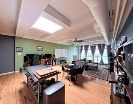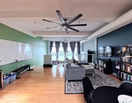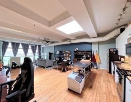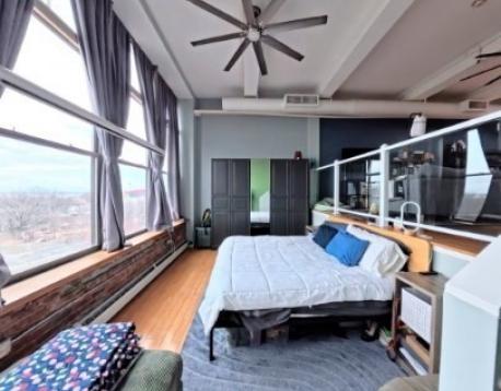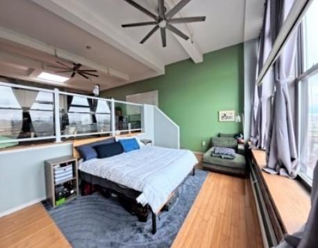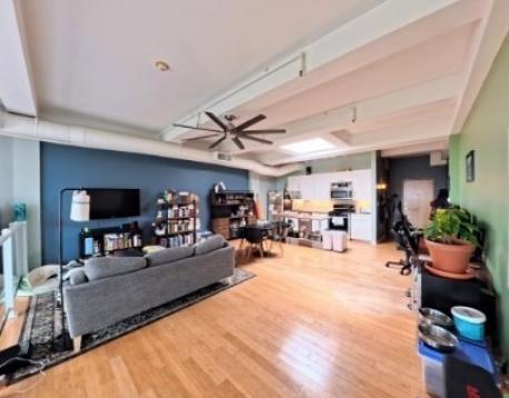 Industrial-style loft at Porter Street Lofts in East Boston with unobstructed park views in Jeffries Point. Features 12' ceilings, oversized windows, and abundant natural light, plus a modern kitchen with stainless steel appliances and space for dining or a home office. Spacious living area fits a large sectional with additional flex space, and the oversized bedroom accommodates a king bed overlooking the park. Includes 2 tandem garage parking spaces, private storage, central AC, in-unit laundry, and hardwood floors. Building amenities include an elevator and a shared roof deck, and the building is just minutes from Logan Airport and the Blue Line. NO PETS!