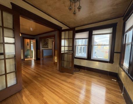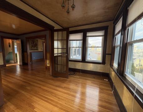 Gorgeous layout- 3 bed, living room, dining room, eat in kitchen AND enclosed porch (can be used as an office or third bedroom). City views, beautiful landscaping, and tons of natural sunlight. Hardwood floors throughout. Garage parking available for rent. Mission Hill neighborhood- close to Northeastern, Longwood Medical, MCPHS.