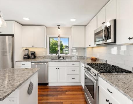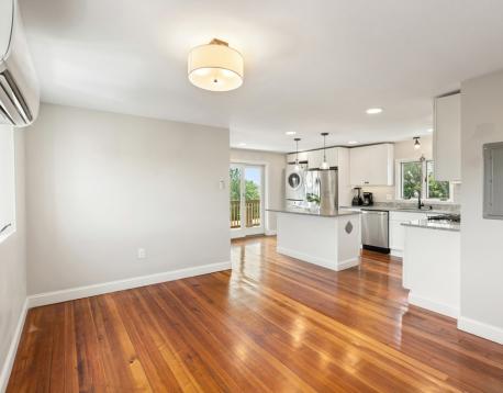 Penthouse-style 3BR/2BA condo in East Bostons sought-after Orient Heights, 2 off-street tandem parking spots with Tesla EV charger. Sun-filled top-floor unit features an open layout, granite island kitchen with stainless appliances, in-unit laundry & custom closets. Primary bedroom includes a private en suite bath. Enjoy a private back deck with sweeping views. Minutes to Logan Airport, Constitution Beach, tennis/pickleball courts, parks, skating rink & public transit. Highly walkable location. Ideal for professionals, frequent flyers & commuters. Unit also available for sale.