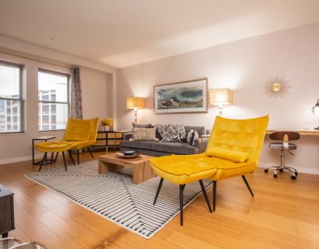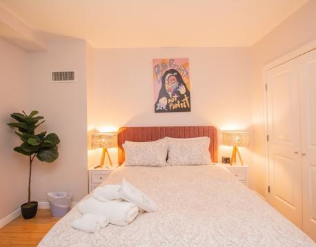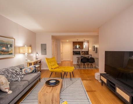 Fully Furnished 2 Bed/2 Bath apartment is modern luxurious and spacious. The open kitchen, dining and living area make entertaining a breeze. Kitchen boasts cherry cabinets, granite countertops, stainless appliances and breakfast bar. The unit has great sunlight that bounces off the beautiful bamboo floors providing a light and bright space. The primary suite features a mosaic tiled bath with a walk-in closet and king sized bed. This elevator building is located in the heart of Boston's dynamic, vibrant & cultural neighborhood of Fenway and in the midst of eight colleges and universities, the Longwood Medical Area , major museums and tourist attractions. Steps to public transportation, shops, restaurants, cafes and nightlife of Kenmore Square