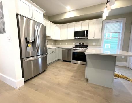 Condo-quality apartment now available! 2024 new construction three bedroom, two bathroom home offers a smart, functional layout with clean modern finishes throughout. The open living area flows into the kitchen, which features custom cabinetry, stainless steel appliances, and quartz countertops. Hardwood floors run throughout the unit, and both bathrooms include tiled showers with glass doors and modern vanities. Additional features include in unit laundry, energy efficient heating and cooling, tankless hot water, all new plumbing and electrical, a full sprinkler system, new windows, and a private rear deck. Conveniently located near the Orange Line at Roxbury Crossing with easy access to the Longwood Medical Area, hospitals, universities, and neighborhood amenities. Undergraduate tenants are welcome with a co-signer. Available September 1, 2026.