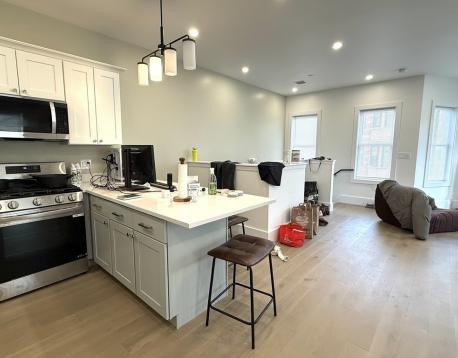 Condo-quality apartment now available! 2024 new construction three bedroom, two bathroom home offers a smart, functional layout with clean modern finishes throughout. The open living area flows into the kitchen, which features custom cabinetry, stainless steel appliances, and quartz countertops. Hardwood floors run throughout the unit, and both bathrooms include tiled showers with glass doors and modern vanities. Additional features include in unit laundry, energy efficient heating and cooling, tankless hot water, all new plumbing and electrical, a full sprinkler system, new windows, and a private rear deck. Conveniently located near the Orange Line at Roxbury Crossing with easy access to the Longwood Medical Area, hospitals, universities, and neighborhood amenities. Undergraduate tenants are welcome with a co-signer. Available September 1, 2026.