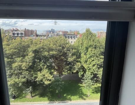 Large studio with great layout and high ceilings on 5th floor of elevator building overlooking Comm. Ave on Dartmouth Street corner. Highly desirable Vendome Building. 24/7 concierge/security. Close to Newbury St shops/restaurants, MBTA Green Line's Copley stop (Harvard Medical access), Trader Joe's & Shaws, Back Bay Orange line, Charles River Esplanade, Prudential Mall & Boston Common. Brazilian Cherry hardwood floors, modern kitchen appliances, cabinets & granite countertops, built-in desk/exposed brick / generous closets space. Card-op washer/dryer down hallway trash chute/recycling on same floor.