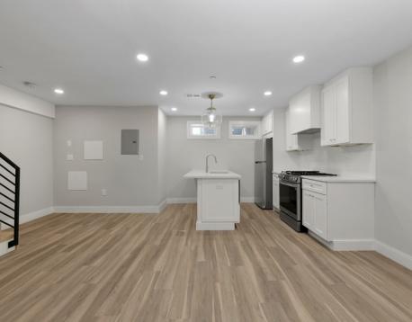 Come and see this newly renovated 5 bedroom + 4 full bathroom apartment in the heart of Jeffries Point, Boston! Open kitchen and living room layout with an exclusive outdoor deck and just over 1500SF of living space! The kitchen features light wood cabinetry, stainless steel appliances and beautifully stained natural hardwood floors throughout. Bedrooms include well-sized, double door closets for extra storage and outlets on every wall. This home offers washer and dryer in unit as well as central AC and forced hot air. New plumbing, electrical, insulation and windows results in a highly efficient building and thus lower utility costs for tenants. Welcome home!