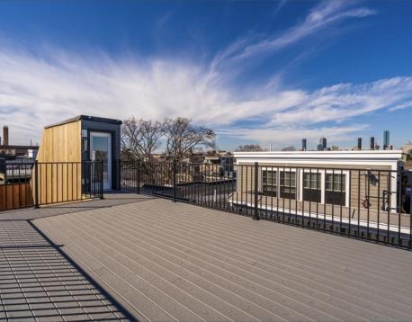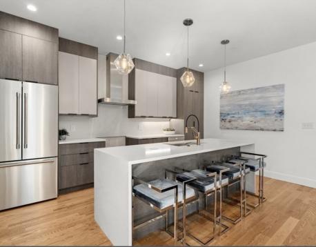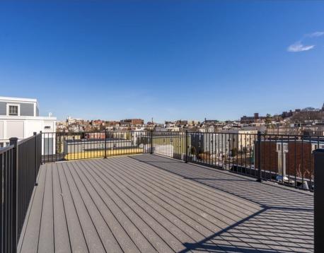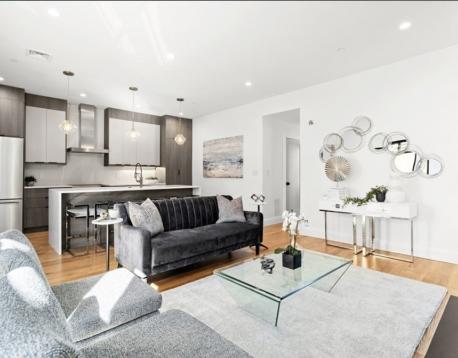 Stunning 2021-built South Boston penthouse with elevated design, premium finishes, & exceptional private outdoor living. This 2-bed, 2-bath home features an open yet defined layout w/dining area, expansive living space w/ fireplace. Interior access leads to an oversized roof deck with sweeping city views, perfect for entertaining. Chefs kitchen by DelAnno Boston offers dual-tone cabinetry, waterfall quartz countertops, stainless appliances, custom lighting, & built-in mini bar with refrigerator plus two wine refrigerators. Bedrooms fit king beds; primary suite has two closets and spa-inspired bath with bold tile and radiant floors. Wide-plank oak floors, mudroom, central A/C, Rinnai tankless water heater, basement storage, & 2 deeded covered parking spaces. Prime West Side location near shops, dining, and West Broadway conveniences.