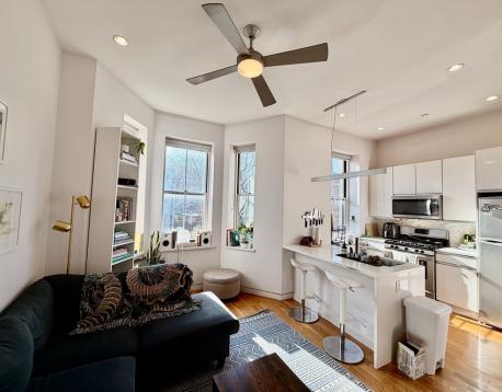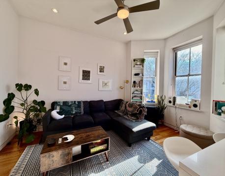 Available 7/1 or 8/1. Stunning modern renovation in prime Mission Hill location. Loft style apartment with large deck that offers amazing city views. This apartment has it all: Gleaming hardwood floors, recessed lighting, vaulted ceiling, stainless steel appliances, quartz countertops, Central A/C and laundry in unit. Breakfast bar and spiral staircase to the loft bedroom make for a first-class living experience.Steps from Longwood Medical, MCPHS and Northeastern. Easy access to Green Line and Orange Line, multiple bus routes. Supermarket across the street. Shops, restaurants and nightlife right at your doorstep. Off-street parking available for rent.