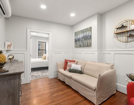A recently renovated, furnished 2 bedroom, 1 bathroom plus den/office apartment in Bostons North End. This charming home features an open concept kitchen/dining space with stainless steel appliances, gas cooking, quartz countertops, tiled backsplash, and custom white shaker-style cabinetry. The living room provides the perfect space to relax with an electric fireplace and the sleek, tiled bathroom complements the homes contemporary style. Hardwood floors and moldings throughout, along with mini-split systems for central heating and cooling, add style and comfort. This home is complete with an incredible location in the heart of the North End's world-renowned dining scene, convenient to Bostons Downtown, Harbor Waterfront, and highways.