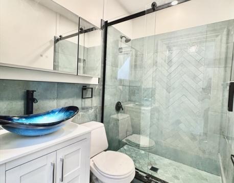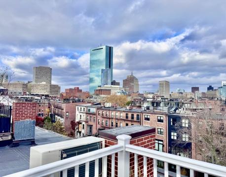 Penthouse two bedroom with private roof deck and full parking space! Located on one of the South End's most sought after streets, this bright and sunny home has just been completed and is ready for move in. Large and open living room with direct access to a spacious private roof deck with sweeping city views. The kitchen has all stainless appliances, stone counter tops and great storage. Both bedrooms are large with natural wood floors. The full bath is finished in all stone.
