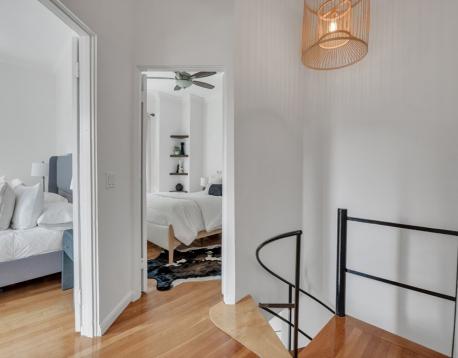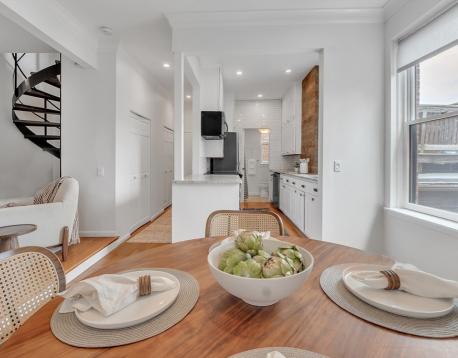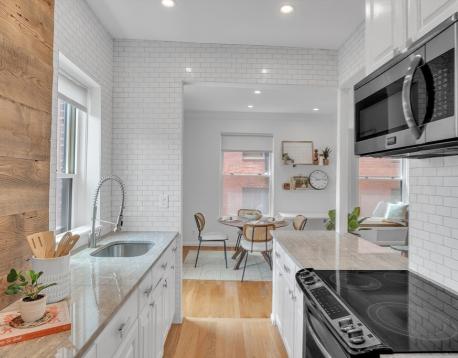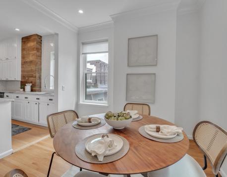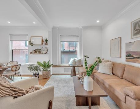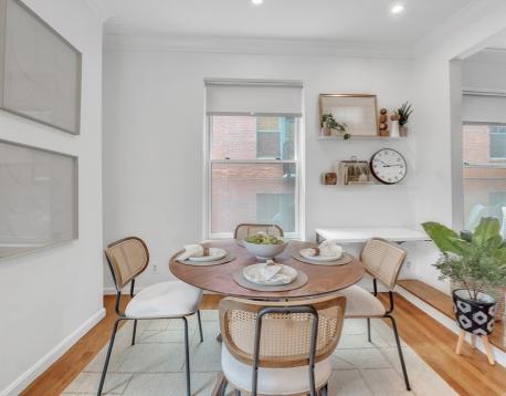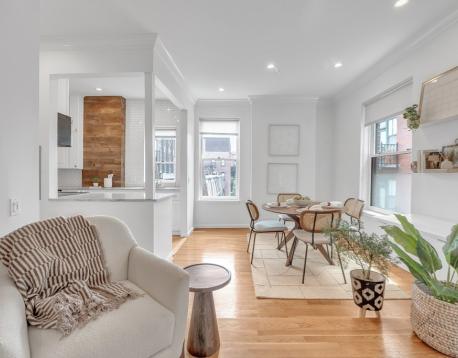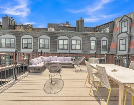 Available 1/1/26, this penthouse duplex is nestled on a quiet, tree-lined street in the South Ends highly desirable Golden Triangle. Offering a seamless blend of comfort and character, the home features a bright, open living and dining area accented by hardwood floors and abundant natural light, creating an inviting space for everyday living and entertaining. The well-appointed galley kitchen provides generous cabinet and counter space for cooking and hosting with ease.Upstairs, two spacious bedrooms offer ample closet storage, complemented by the convenience of in-unit laundry. Additional private storage is available in the basement. Enjoy panoramic city views from the shared rooftop deck, or unwind in the peaceful shared garden just steps from your door. Ideally located near public transportation, renowned restaurants, and charming boutique shops, this home places the best of the South End at your doorstep.