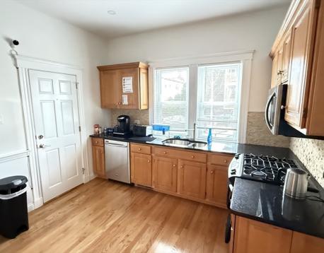 Welcome to this stunning 3-bedroom, 1.5-bath unit that offers a spacious open concept and a range of desirable features. Step inside to discover a warm and inviting living space adorned with beautiful hardwood floors and highlighted by high ceilings that create an airy atmosphere. The unit boasts two decorative fireplaces, adding charm and character to the living area. These features serve as focal points, perfect for creating a cozy ambiance or showcasing your personal style. The kitchen and bathrooms have been tastefully renovated, offering modern fixtures and finishes that blend seamlessly with the unit's classic charm. Prepare meals and entertain guests in the updated kitchen, which provides both functionality and style. Additionally, a wet bar adds a touch of elegance and convenience, perfect for hosting gatherings or enjoying a relaxing evening at home. Central heat and air-conditioning ensure year-round comfort, allowing you to adapt the temperature to your preference.
