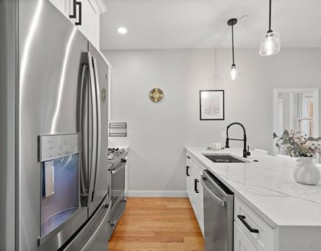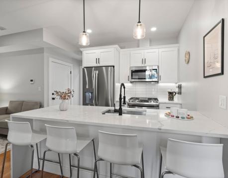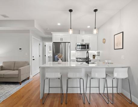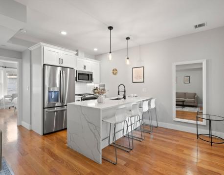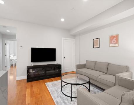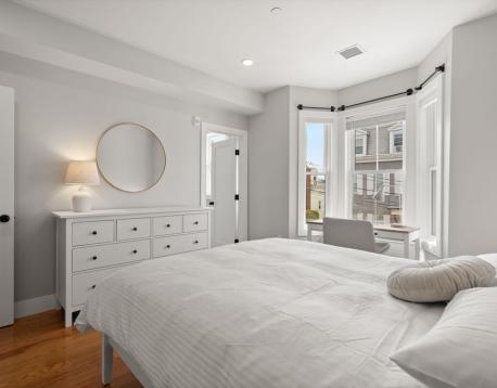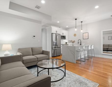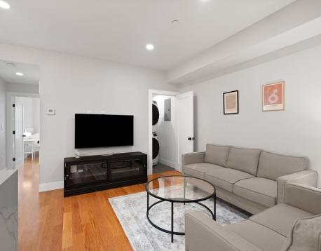 Spacious, fully furnished sun-drenched and airy condo located on the 2nd floor of a recently renovated 3-unit building on a tree-lined street in South Boston. The unit features high ceilings and hardwood floors, Central AC, and a clean storage room in the basement. Upon entry, off the charming kitchen with high-end appliances is a premium living space featuring couches, a 55-inch TV with free use of Netflix and Amazon Prime, Amazon Alexa, smart lights and a wireless charger. Here you will also have access to in-unit laundry with large General Electric Washer and Dryer as well as a vacuum cleaner and a coat closet. The bedrooms are furnished with a queen-size bed, a desk, dresser, 1 set of bed linen, lamps, and 100 hangers. No pets allowed.