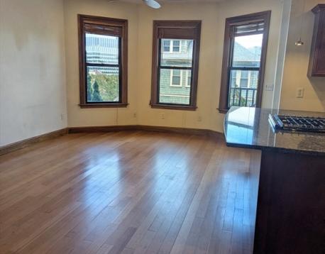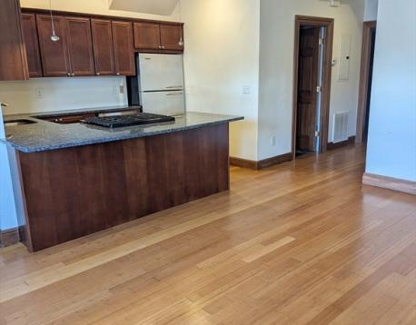 Prime Mission Hill Location, located in a beautifully restored Victorian building, this condo rental offers a rare blend of historic character and modern luxury. Ideal for working professionals or medical residents this Mission Hill gem checks every box for those looking for a stunning 2-Bedroom Condo with City Views. Live in the heart of Mission Hill in this beautifully renovated two-bedroom condo that blends classic charm with modern sophistication. Nestled in a coveted neighborhood near Longwood Medical Area, Northeastern University, and Brigham Circle, this sun-filled unit offers unbeatable access to the Green and Orange lines, making commuting a breeze. This thoughtfully designed home features a bright and airy open-concept layout with soaring ceilings, bamboo hardwood flooring, and stylish exposed ductwork, giving it an urban loft feel. The spacious living and dining area is anchored by a cozy gas fireplace and framed by bay windows offering striking downtown views.