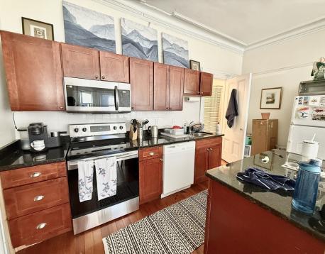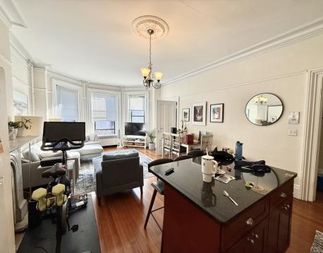 Front facing on Marlborough Street in the middle of the Back Bay. Great location down the street from Newbury Street, Copley Square, and the Prudential center. Building is a traditional brownstone in the grid of the Back Bay. Unit is gorgeous with bay window, hardwood floors, high ceilings, renovated kitchen with island and dishwasher. Laundry in building. Dogs negotiable. Includes heat and hot water.