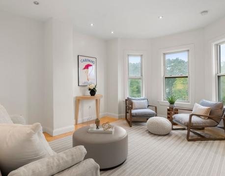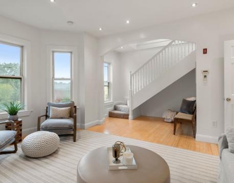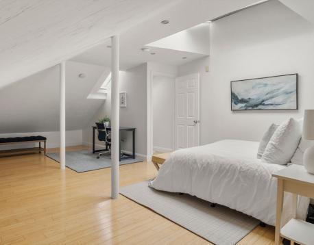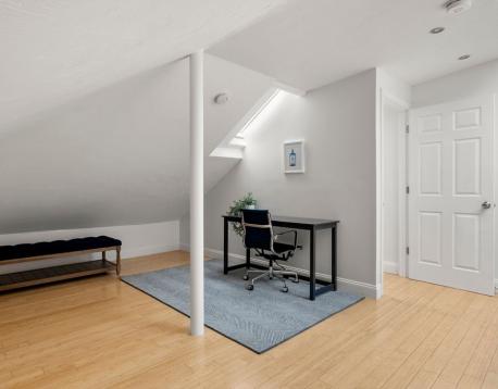Light & bright 3 bedroom, 2 bathroom condo with 1 parking space in the heart of Jamaica Plain's Forest Hills neighborhood. This beautiful top floor unit with hardwood floors sprawls over two levels. The main floor has a spacious living room, eat-in kitchen with granite countertops, stainless steel appliances and ample cabinet space. Two generous sized bedrooms and a full bath complete this floor. The second floor boasts an expansive suite with bedroom/office/flex space, skylights and an ensuite full bath with shower stall and in-unit laundry. Live moments to public transportation (Forest Hills- Orange Line), restaurants, shops, Jamaica Pond, Arnold Arboretum & more with easy access to downtown Boston, Brookline & Longwood medical area. AVAILABLE NOW